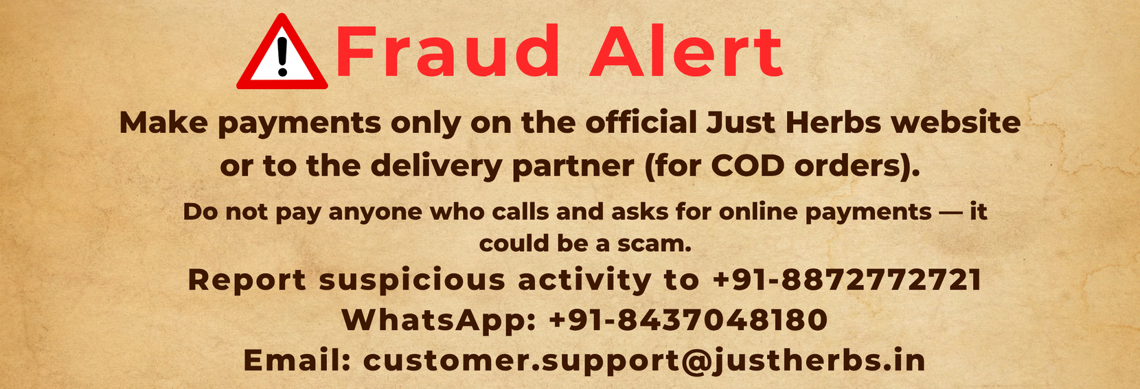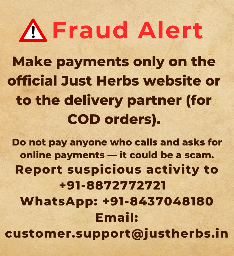 Caution: Just Herbs never calls for payment post-order. Please report such cases to our customer support team.