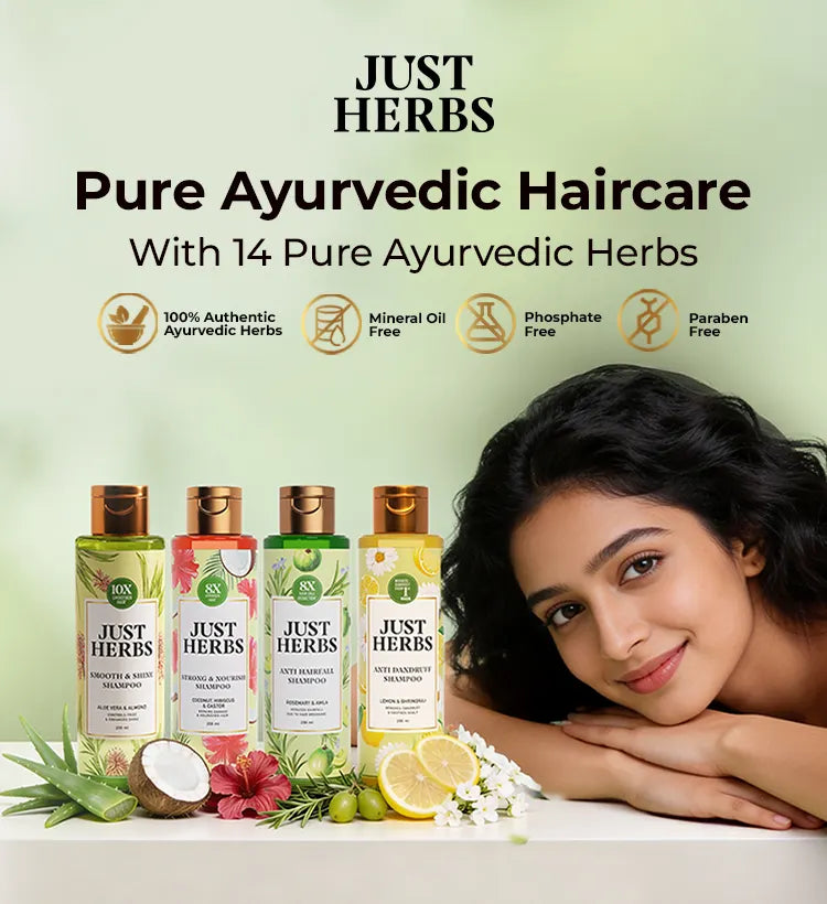 There are a slew of Ayurvedic hair care products your hair needs so it can live its best life. Be it an anti-hair fall product or kalapi naturals, or anti-dandruff concern, Just Herbs’ has created some impressively effective formulas and Ayurvedic hair products with the best ayurvedic herbs for hair to take away all your worries. Like our Handmade Neem Comb helps massage the scalp, improves blood circulation & promotes hair growth. Our Ayurvedic Anti Hair Fall Kit includes a 3 step Ayurvedic hair care trio that targets hair fall and is power-packed with the healing properties of amla, hibiscus, henna, trigonella seed, neem, vetiver, wheatgerm oil and soy lecithin, and many more miraculous Indian herbs. Just Herbs’ Ayurvedic Anti Dandruff Kit is equally efficient in treating itchy and flaky scalp. With a mild infusion of Soya Protein, Wheatgerm, and other precious herbs such as Methi, Neem, Hibiscus, Vetiver, and Lecithin work together to control dandruff build-up, strengthen your hair and give them a touch of lush and luster. Look for Herbal hair cream to add more life to your dully and frizzy hair, or try natural and organic hair conditioners for hair strengthening.