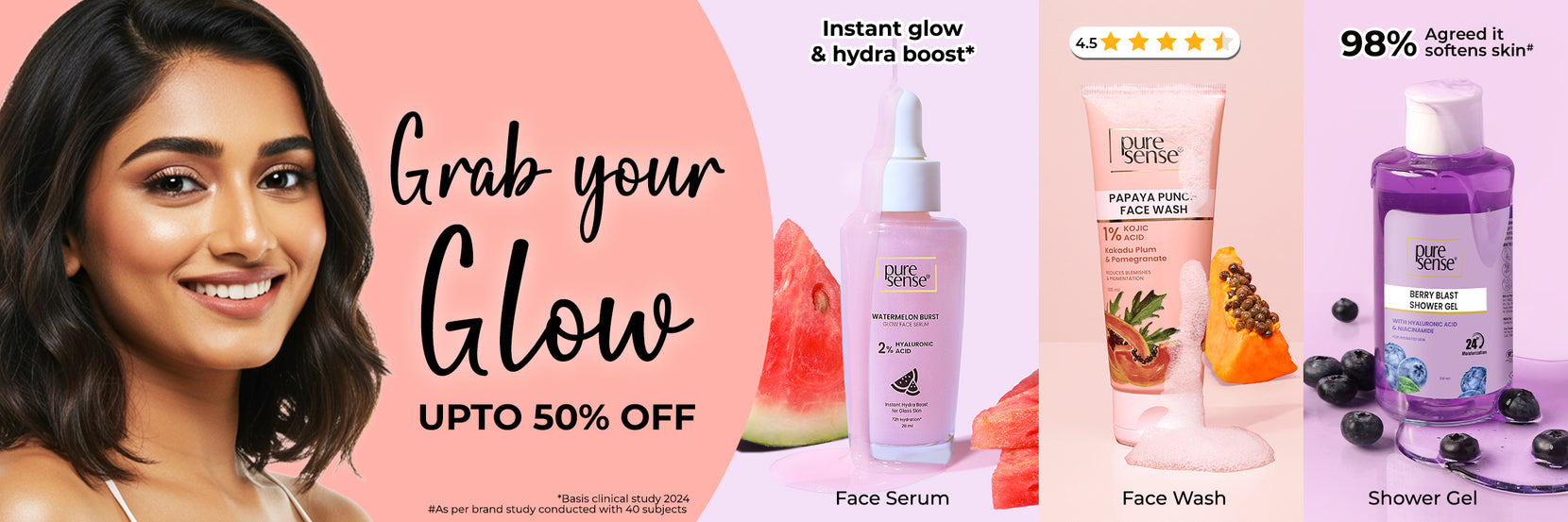 PureSense Watermelon Burst Face Serum, enriched with 2% Hyaluronic Acid, a miracle molecule renowned for addressing dry skin concerns and providing an instant Hydra Boost for a Glass skin effect. Featuring a unique blend of 3 molecular sizes of Hyaluronic Acid, 100% real fruit extracts, Prebiotic moisturizers, and multiple efficacious vitamins, this potent serum offers clinically proven hydration for up to 72 hours.