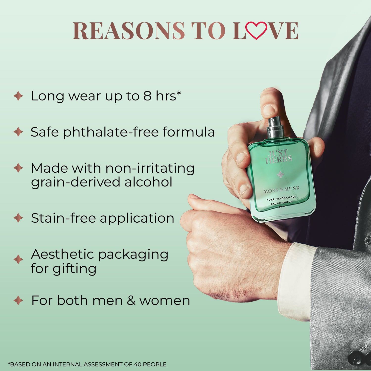 Phthalates are a group of chemicals used to make perfumes last longer however, they could be potentially harmful as they are considered to be carcinogenic and tumor-promoting agents. Our pure fragrances are derived from clean and natural ingredients. We use Ethyl Alcohol (the only grain-derived alcohol that is safe to consume) and modify it with Tert. Butyl Alcohol instead of DEP (the most commonly used phthalate), to make it phthalate-free & absolutely safe to use.