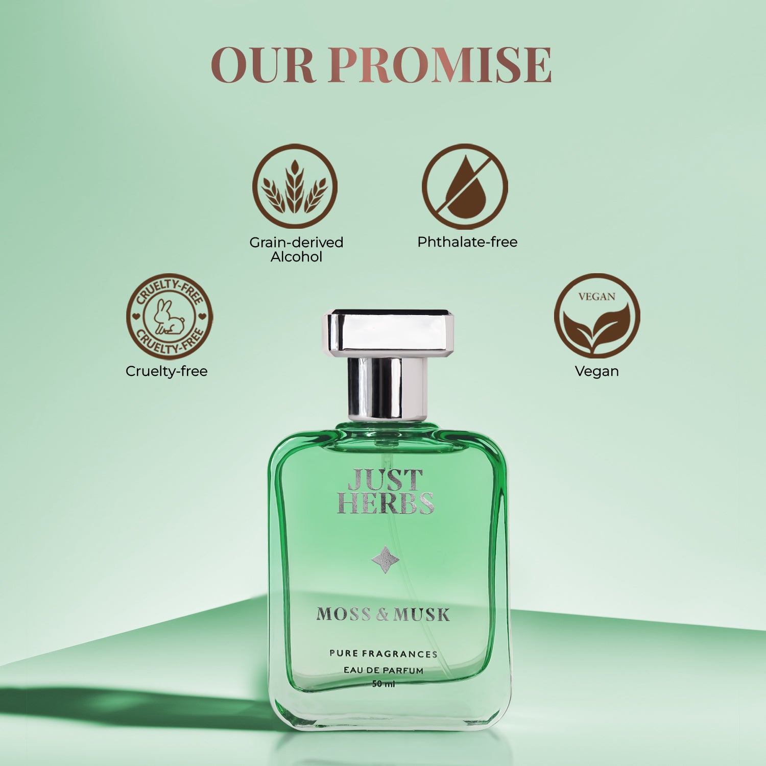 Grain-derived alcohol also known as Ethanol is derived from natural grains including wheat, rice & sugarcane and unlike synthetic alcohol it has no other additives. It doesn’t cause irritation on the skin & doesn’t evaporate quickly hence, making it more long-lasting.